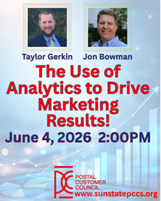 JON BOWMAN AND TAYLOR GERKIN PRESENT THE USE OF ANALYTICS TO DRIVE MARKETING RESULTS! JOIN US https://usps.zoomgov.com/j/1602880721?pwd=qlON80L4Bv467BHBfPRMqF3NXvBzn6.1
